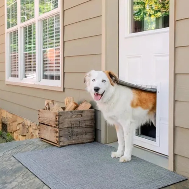Depending on your dog’s size, the dog door security screen can come in various sizes, such as small, medium, and large. Apart from a regular dog door for screen doors, you can also find various combo packs. Once installed, your pet might be unsure about the dog door. The flapping might scare them, and they may not understand what it’s for. To help them get used to it, keep the door propped open so they can see a clear path without the flap moving. You can also lead them through with treats and their favourite toy.