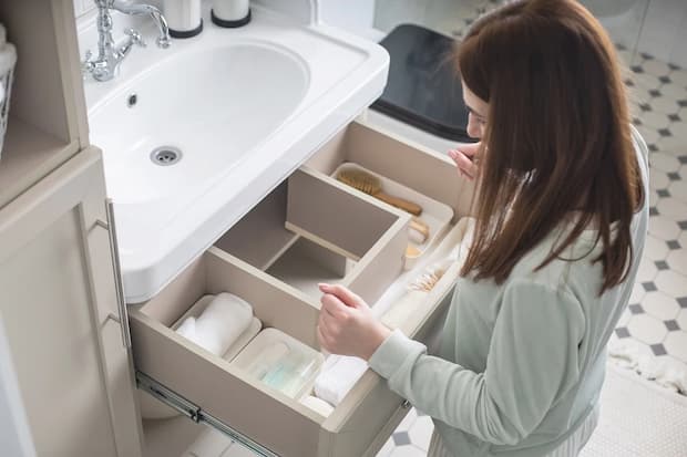 Cabinet organisers are the secret to a bathroom free of clutter. They make the most of limited space and store everything from skincare to cleaning supplies in order, from drawer dividers that fit small spaces to multi-level shelves. Clear acrylic organisers are ideal for visibility, and baskets or bins add texture and personality.